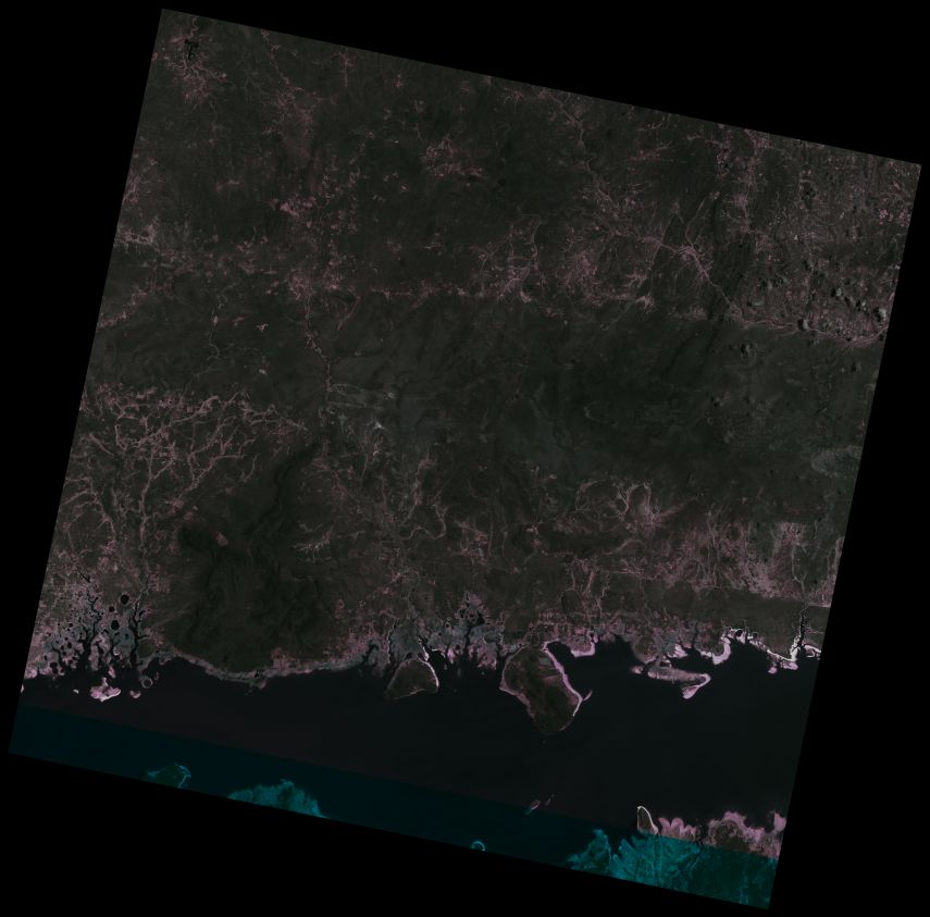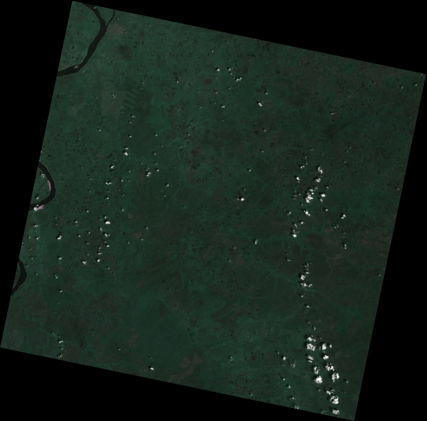 As imagens de satélite ortorretificadas correspondem às cenas referenciadas a um sistema de coordenadas, corrigidas geometricamente com pontos de apoio de campo e ortorretificadas com modelos digitais de elevação para correção de relevo. As imagens estão em formato Geotiff com 4 bandas espectrais de 8 bits cada.
