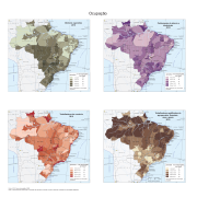 Prancha contendo a distribuição espacial de 4 grupos de profissões (diretores e gerentes, profissionais da ciência e intelectuais, trabalhador do comércio e trabalhadores qualificados da agropecuária, florestal, caça e pesca) em 2010. NOTA: O percentual para cada grupo de ocupação foi calculado em função do total de pessoas ocupadas por mesorregião geográfica.
