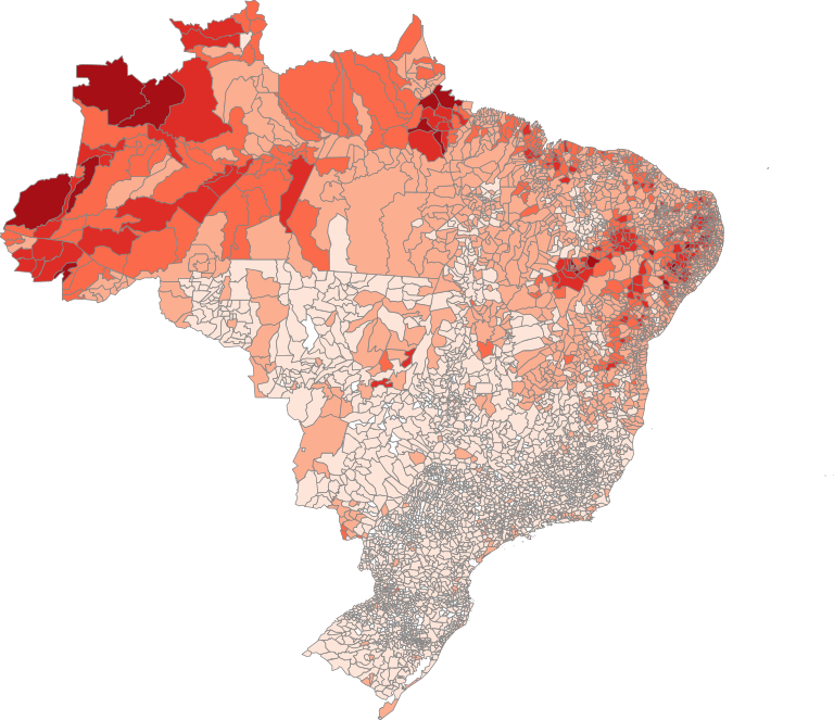 Percentual de pessoas residentes em domicílios particulares permanentes ocupados (DPPO) sem água canalizada no total da população residente em DPPOs no recorte geográfico. Base de dados que contém a representação espacial dos dados de percentual de pessoas residentes em DPPOs sem água canalizada por Município no Censo Demográfico 2022. O geosserviço representa em mapa coroplético o percentual de pessoas residentes em DPPOs sem água canalizada e disponibiliza estes valores. Resultados do Universo. Informações atualizadas em 23/02/2024. Para mais detalhes, consultar a documentação metodológica.