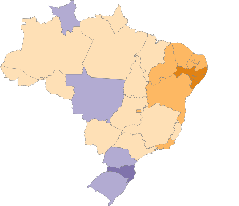 Cor ou raça predominante corresponde a cor ou raça mais frequentemente declarada no recorte de Unidade da Federação. Base de dados que contém a representação espacial da cor ou raça predominante por Unidade da Federação no Censo Demográfico 2022. O geosserviço representa em mapa coroplético da cor ou raça predominante e disponibiliza valores absolutos e percentuais de todas as cores ou raças da população residente. Resultados do Universo. Informações atualizadas em 22/12/2023. Para mais detalhes, consultar a documentação metodológica.