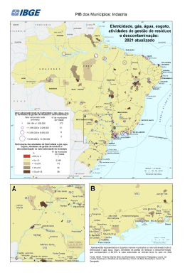 "Conjunto de Mapas exibindo a o valor bruto e a participação das atividades de eletricidade e gás, água, esgoto, atividades de gestão de resíduos e descontaminação no valor adicionado bruto municipal Estatísticas macroeconômicas. Dados por município. Período de referência 01/01/2021 a 31/12/2021. Contas Nacionais Periodicidade anual IBGE, Produto Interno Bruto dos Municípios. Diretoria de Pesquisas, Coordenação de Contas Nacionais e Diretoria de Geociências, Coordenação de Geografia. IBGE, Malha Municipal 2021"