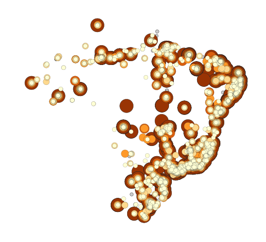 Percentual de moradores em domicílios particulares permanentes ocupados (DPPO), em setores censitários selecionados para a Pesquisa Urbanística do Entorno dos Domicílios, situados em vias com presença de árvores, no recorte geográfico, no ano considerado. Base de dados disponibilizada através de geosserviço que representa, por símbolos graduados, o percentual de moradores em DPPOs situados em vias com presença de árvores, por Favela e Comunidade Urbana (FCU), no Censo Demográfico 2022. O geosserviço também possibilita consultar outras informações na base de dados, como a quantidade absoluta de moradores em DPPOs situados em vias com presença de árvores. A pesquisa do Entorno tem escopo limitado às faces de quadra dos logradouros localizados em setores urbanos e em parte de outros setores selecionados por apresentarem concentrações de características urbanas. Resultados do Universo. Para mais informações, consultar a documentação metodológica da pesquisa.