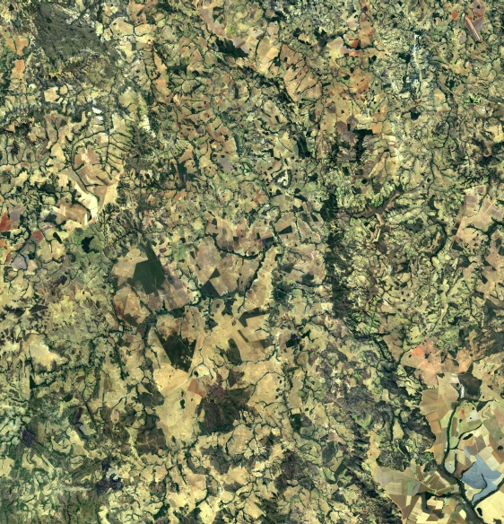 Mosaico de imagens de satélite multiespectral, ortorretificadas e realçadas para homogeneizar sua apariência. O recorte é delimitado por folhas do mapeamento sistemático brasileiro de 1:100.000, abrangendo um quadrilátero geográfico de 30' de latitude por 30' de longitude.