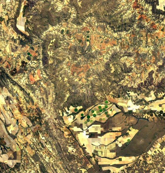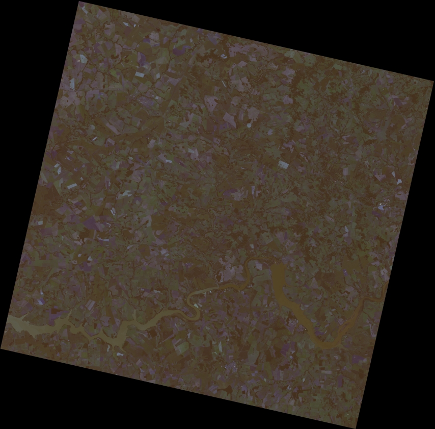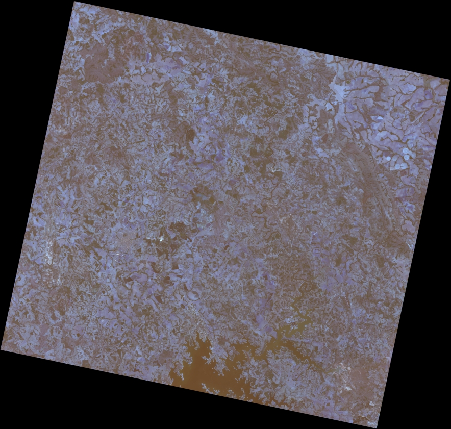 Mosaico de imagens de satélite multiespectral, ortorretificadas e realçadas para homogeneizar sua apariência. O recorte é delimitado por folhas do mapeamento sistemático brasileiro de 1:100.000, abrangendo um quadrilátero geográfico de 30' de latitude por 30' de longitude.