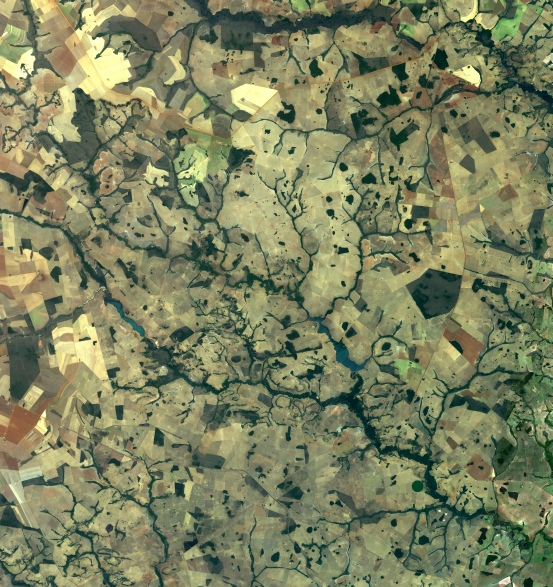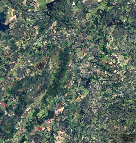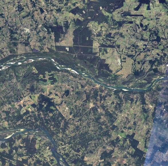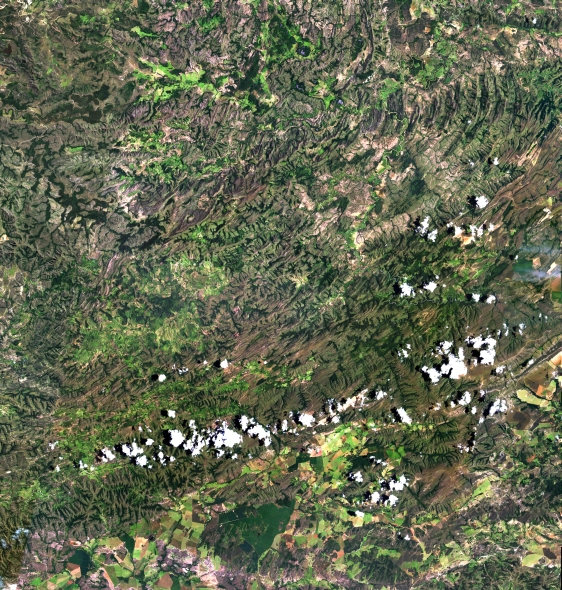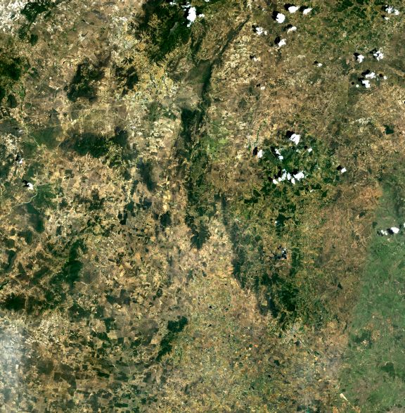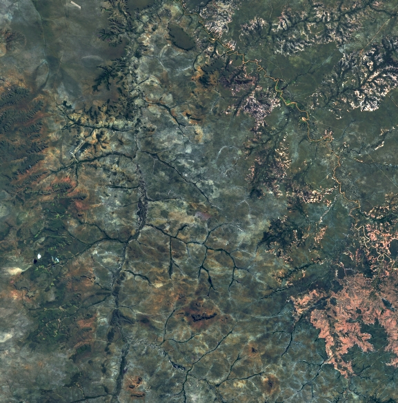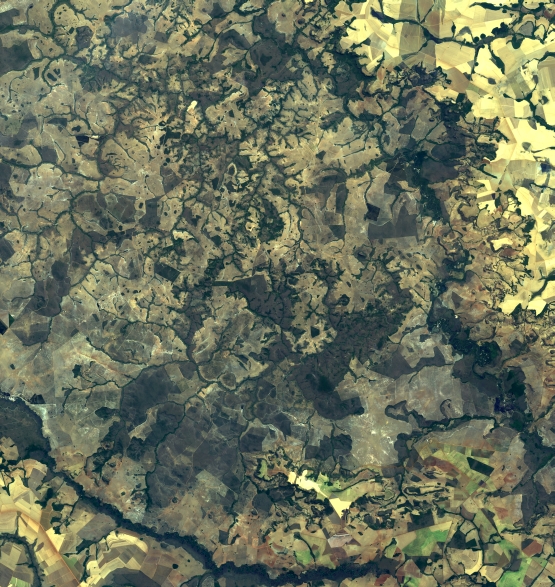 Mosaico de imagens de satélite multiespectral, ortorretificadas e realçadas para homogeneizar sua apariência. O recorte é delimitado por folhas do mapeamento sistemático brasileiro de 1:100.000, abrangendo um quadrilátero geográfico de 30' de latitude por 30' de longitude.
