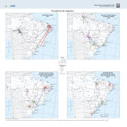 Duas prancha contendo ilustrações que relacionam os níveis hierarquicos urbanos e as migrações. São 7 mapas retratando para cada nível o volume dos saldo migratório, se é positivo ou negativo, e a taxa líquida de migração (TLM), resultado do valor de saldo sobre a população total dos centros. A primeira prancha contem três mapas que retratam cada um os níveis hierarquico Metropolitano, Capital regional e Centro subregional e um quadro com um gráfico e um texto. O gráfico apresenta o desempenho da taxa líquida de migração nos níveis hierarquicos. Os saldos migratórios referem-se apenas às trocas de população entre os municípios do Brasil. Não estão incluídas as migrações com origem e destino em países estrangeiros, assim como aquelas cujo município de origem no Brasil não foi determinado (ignorados).