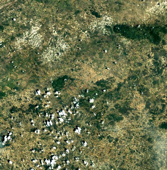 Mosaico de imagens de satélite multiespectral, ortorretificadas e realçadas para homogeneizar sua apariência. O recorte é delimitado por folhas do mapeamento sistemático brasileiro de 1:100.000, abrangendo um quadrilátero geográfico de 30' de latitude por 30' de longitude.