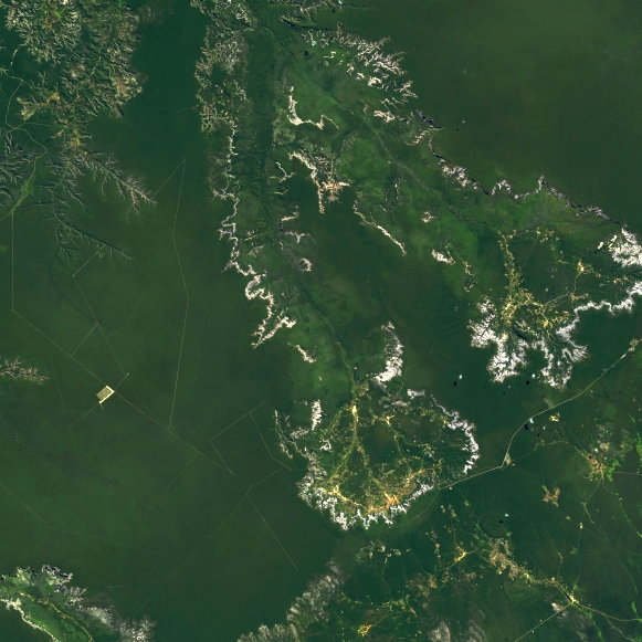 Mosaico de imagens de satélite multiespectral, ortorretificadas e realçadas para homogeneizar sua apariência. O recorte é delimitado por folhas do mapeamento sistemático brasileiro de 1:100.000, abrangendo um quadrilátero geográfico de 30' de latitude por 30' de longitude.