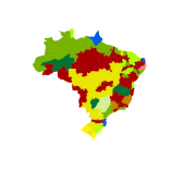 "Mapa exibindo as Atividades agropecuárias mais importantes das Regiões Rurais (número de Regiões atividade) Estatísticas macroeconômicas. Dados por Região Rural. Período de referência 01/01/2020 a 31/12/2020. Contas Nacionais região geográfica imediata Recorte geográfico que reúne um conjunto de municípios, sendo um deles – ou mais do que um, no caso de arranjo populacional – o polo. Periodicidade anual IBGE, Produto Interno Bruto dos Municípios. Diretoria de Pesquisas, Coordenação de Contas Nacionais e Diretoria de Geociências, Coordenação de Geografia. IBGE, Malha Municipal 2020"