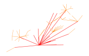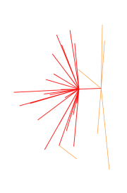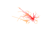 Geoserviço exibindo detalhamento da rede do AP Rio de Janeiro (RJ) - Metrópole Nacional (1B) e suas interações. Estrutura da rede, indicando vínculo direto ao centro principal em vermelho, vínculos a centros secundários em laranja. IBGE, Diretoria de Geociências, Coordenação de Geografia, Regiões de Influência das Cidades, 2018