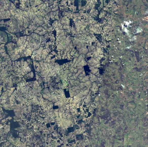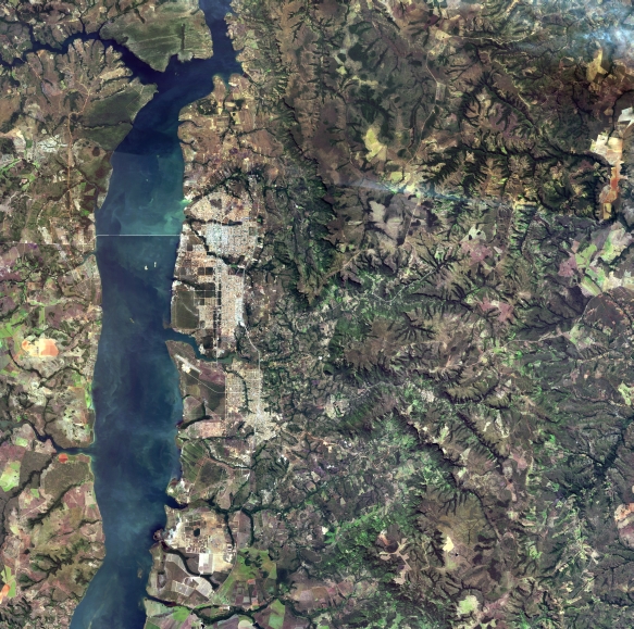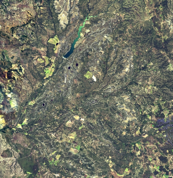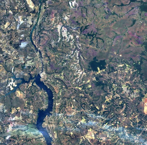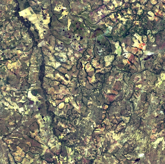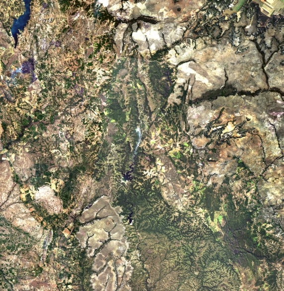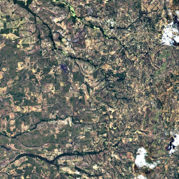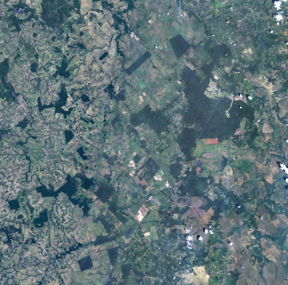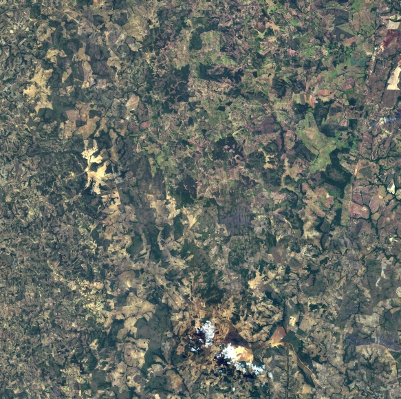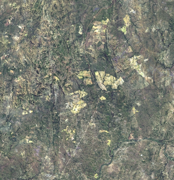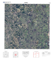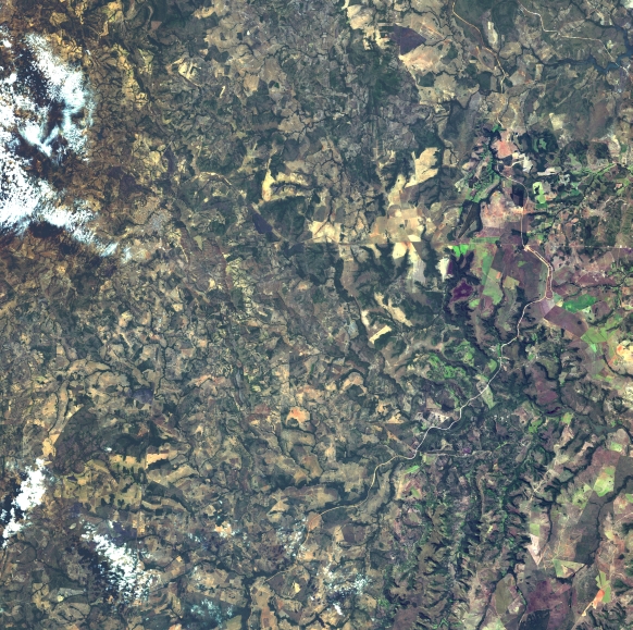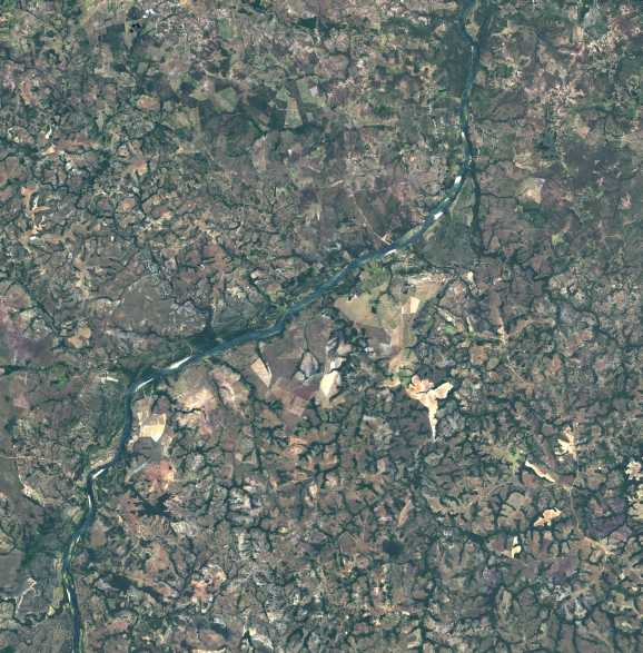 Mosaico de imagens de satélite multiespectral, ortorretificadas e realçadas para homogeneizar sua apariência. O recorte é delimitado por folhas do mapeamento sistemático brasileiro de 1:100.000, abrangendo um quadrilátero geográfico de 30' de latitude por 30' de longitude.