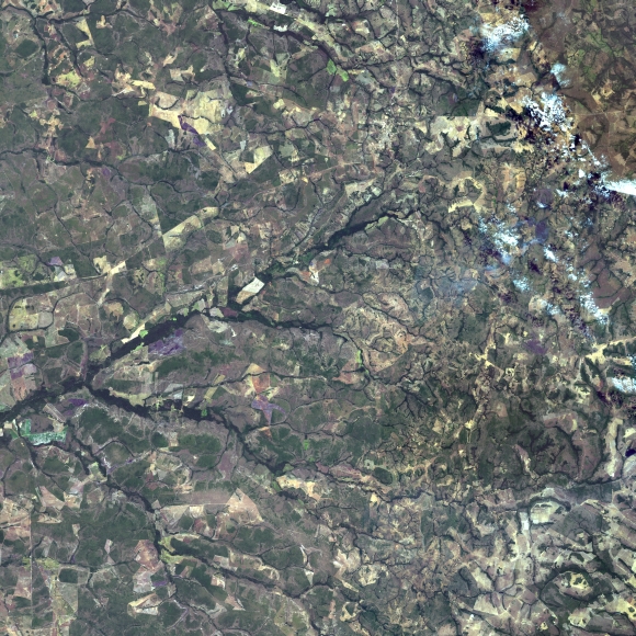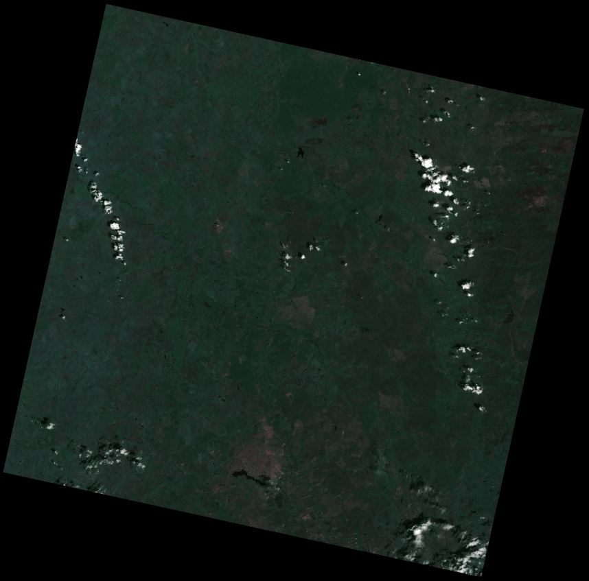 As imagens de satélite ortorretificadas correspondem às cenas referenciadas a um sistema de coordenadas, corrigidas geometricamente com pontos de apoio de campo e ortorretificadas com modelos digitais de elevação para correção de relevo. As imagens estão em formato Geotiff com 4 bandas espectrais de 8 bits cada.