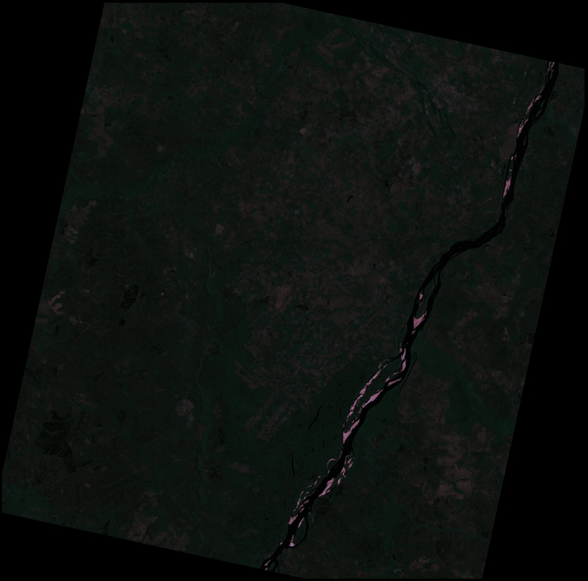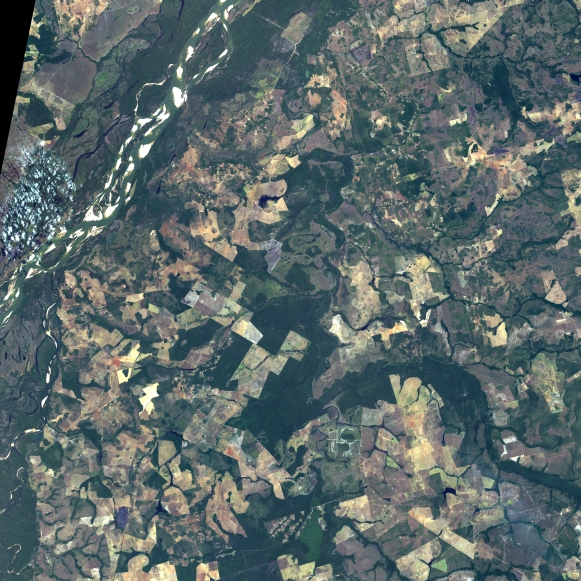 Mosaico de imagens de satélite multiespectral, ortorretificadas e realçadas para homogeneizar sua apariência. O recorte é delimitado por folhas do mapeamento sistemático brasileiro de 1:100.000, abrangendo um quadrilátero geográfico de 30' de latitude por 30' de longitude.