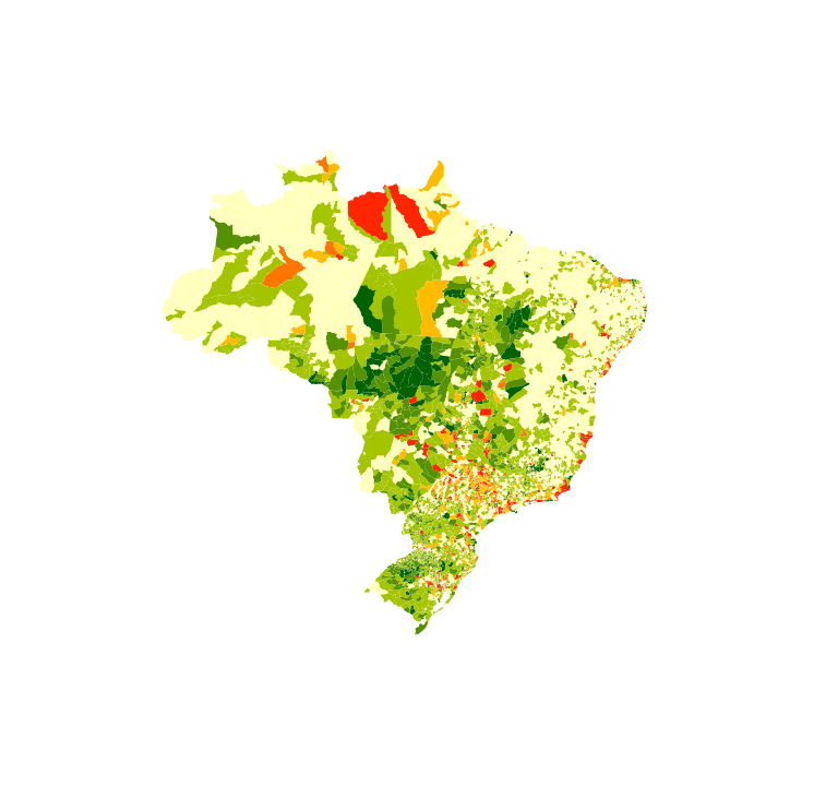"Mapa exibindo a diferença da razão do PIB per capita do município ante o PIB per capita do Brasil em 2019 - revisado e a razão do PIB per capita do mesmo município ante o PIB per capita do Brasil em 2002 em número índice (PIB per capita do Brasil = 100) Estatísticas macroeconômicas. Dados por município. Períodos de referência 01/01/2002 a 31/12/2002 e 01/01/2019 a 31/12/2019. Para o cálculo foi utilizada a População residente estimada para 1º de julho de 2002 e 2019, segundo os municípios, enviada ao Tribunal de Contas da União – TCU. Dados em R$ por pessoa Contas Nacionais Periodicidade anual IBGE, Produto Interno Bruto dos Municípios. Diretoria de Pesquisas, Coordenação de Contas Nacionais e Diretoria de Geociências, Coordenação de Meio Ambiente. IBGE, Malha Municipal 2019"