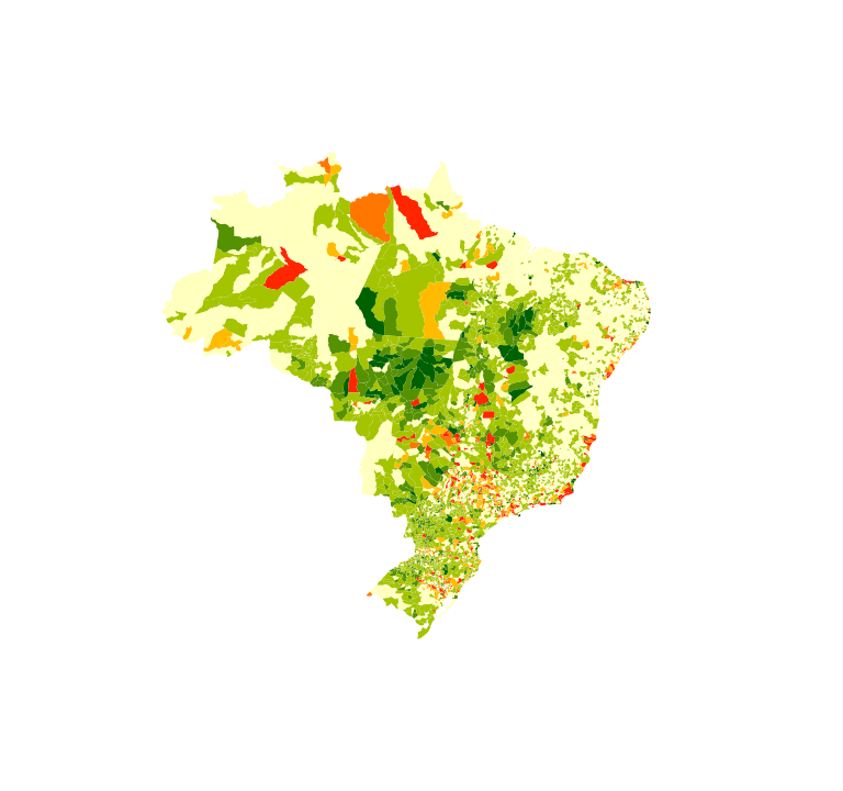 "Mapa exibindo a diferença da razão do PIB per capita do município ante o PIB per capita do Brasil em 2021 - atualizado e a razão do PIB per capita do mesmo município ante o PIB per capita do Brasil em 2002 em número índice (PIB per capita do Brasil = 100) Estatísticas macroeconômicas. Dados por município. Períodos de referência 01/01/2002 a 31/12/2002 e 01/01/2021 a 31/12/2021. Para o cálculo foi utilizada a População residente estimada para 1º de julho de 2002 e 2021, segundo os municípios, enviada ao Tribunal de Contas da União – TCU. Dados em R$ por pessoa Contas Nacionais Periodicidade anual IBGE, Produto Interno Bruto dos Municípios. Diretoria de Pesquisas, Coordenação de Contas Nacionais e Diretoria de Geociências, Coordenação de Geografia. IBGE, Malha Municipal 2021"
