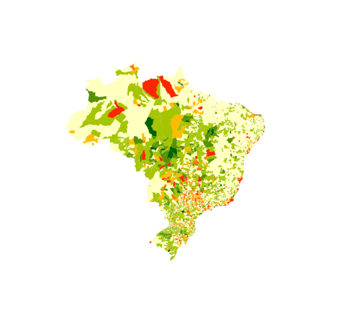 "Mapa exibindo a diferença da razão do PIB per capita do município ante o PIB per capita do Brasil em 2020 e a razão do PIB per capita do mesmo município ante o PIB per capita do Brasil em 2002 em número índice (PIB per capita do Brasil = 100) Estatísticas macroeconômicas. Dados por município. Períodos de referência 01/01/2002 a 31/12/2002 e 01/01/2020 a 31/12/2020. Para o cálculo foi utilizada a População residente estimada para 1º de julho de 2002 e 2020, segundo os municípios, enviada ao Tribunal de Contas da União – TCU. Dados em R$ por pessoa Contas Nacionais Periodicidade anual IBGE, Produto Interno Bruto dos Municípios. Diretoria de Pesquisas, Coordenação de Contas Nacionais e Diretoria de Geociências, Coordenação de Meio Ambiente. IBGE, Malha Municipal 2020"