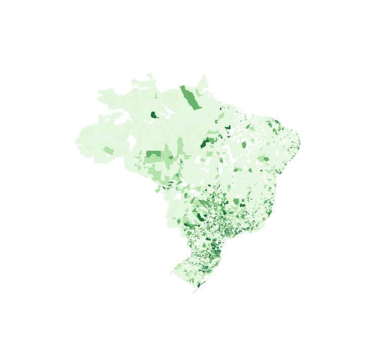 "Mapa exibindo a participação da indústria de transformação no valor adicionado bruto municipal Estatísticas macroeconômicas. Dados por município. Período de referência 01/01/2021 a 31/12/2021. Contas Nacionais Periodicidade anual IBGE, Produto Interno Bruto dos Municípios. Diretoria de Pesquisas, Coordenação de Contas Nacionais e Diretoria de Geociências, Coordenação de Geografia. IBGE, Malha Municipal 2021"